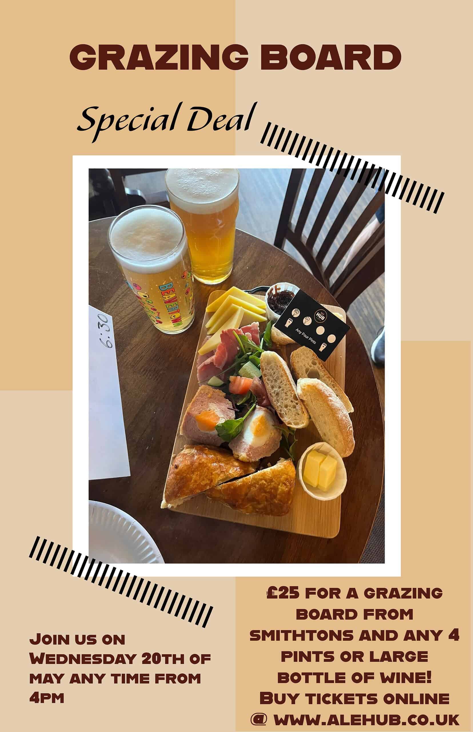💷 £25 for a grazing board + any 4 pints or a large bottle of wine