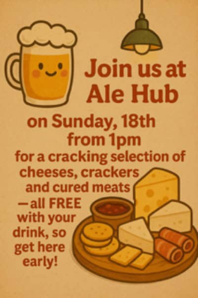 🧀🍺 CHEESE & BEER SUNDAY AT ALE HUB 🍺🧀 Join us Sunday 18th from 1pm for a cracking selection of cheeses, crackers, and cured meats — FREE with your drink!