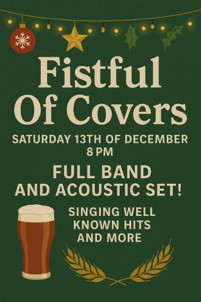 Fistful of Covers return with a full band AND acoustic set — singing all your favourite hits. 8PM start, don’t miss it!