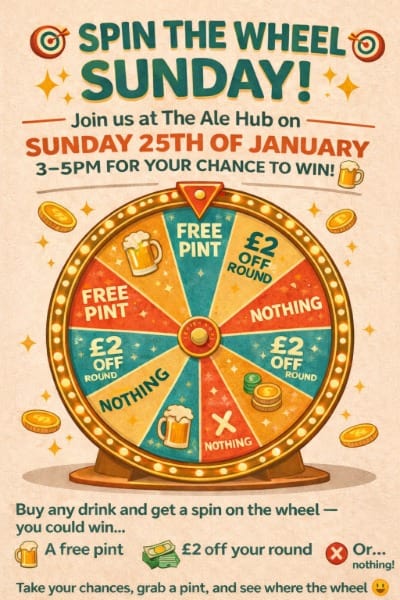 Join us at The Ale Hub on Sunday 25th January, 3–5pm for your chance to win!
